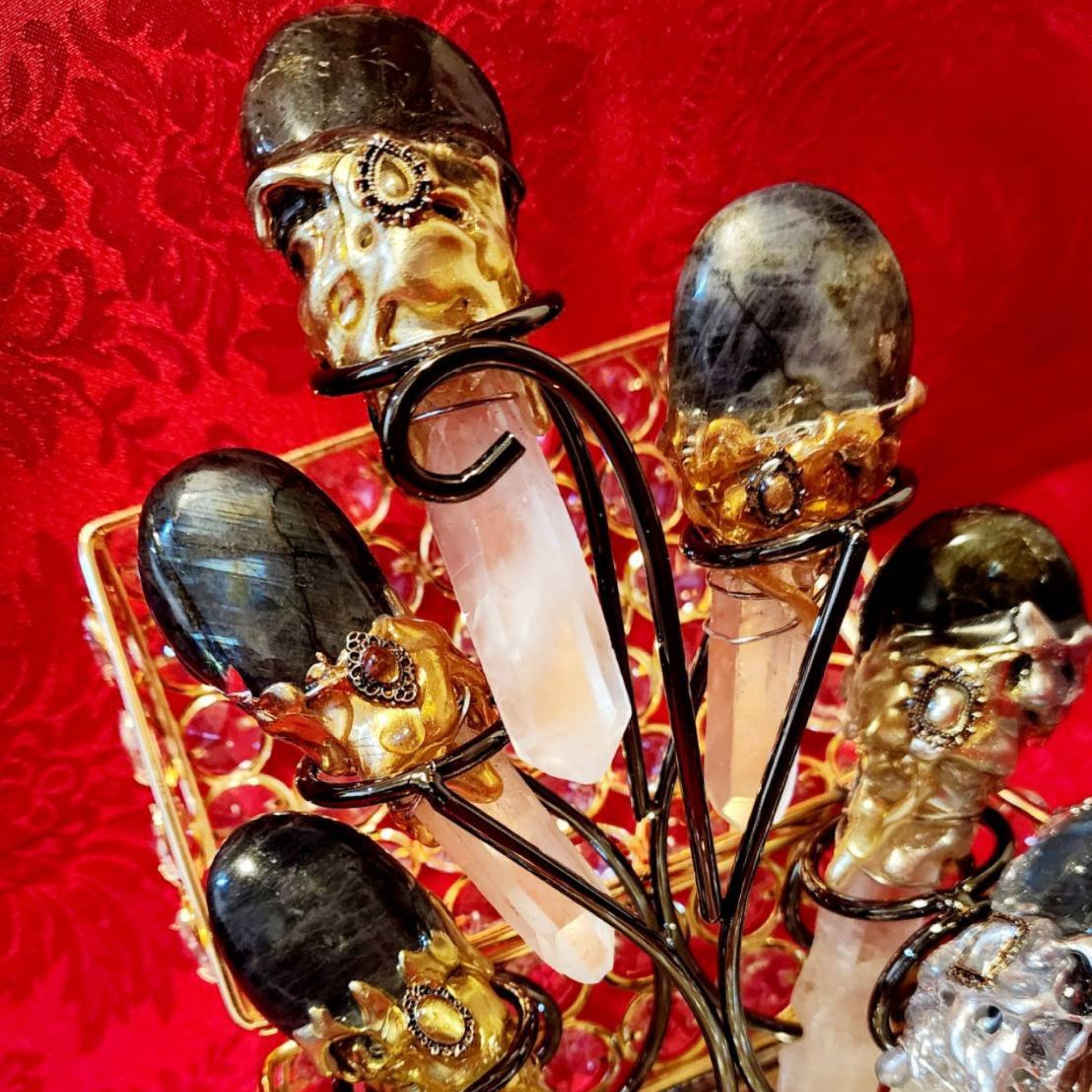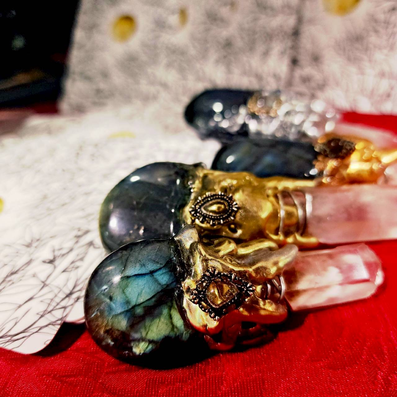 天然石「ラブラドライト」と「水晶」が付いています♡